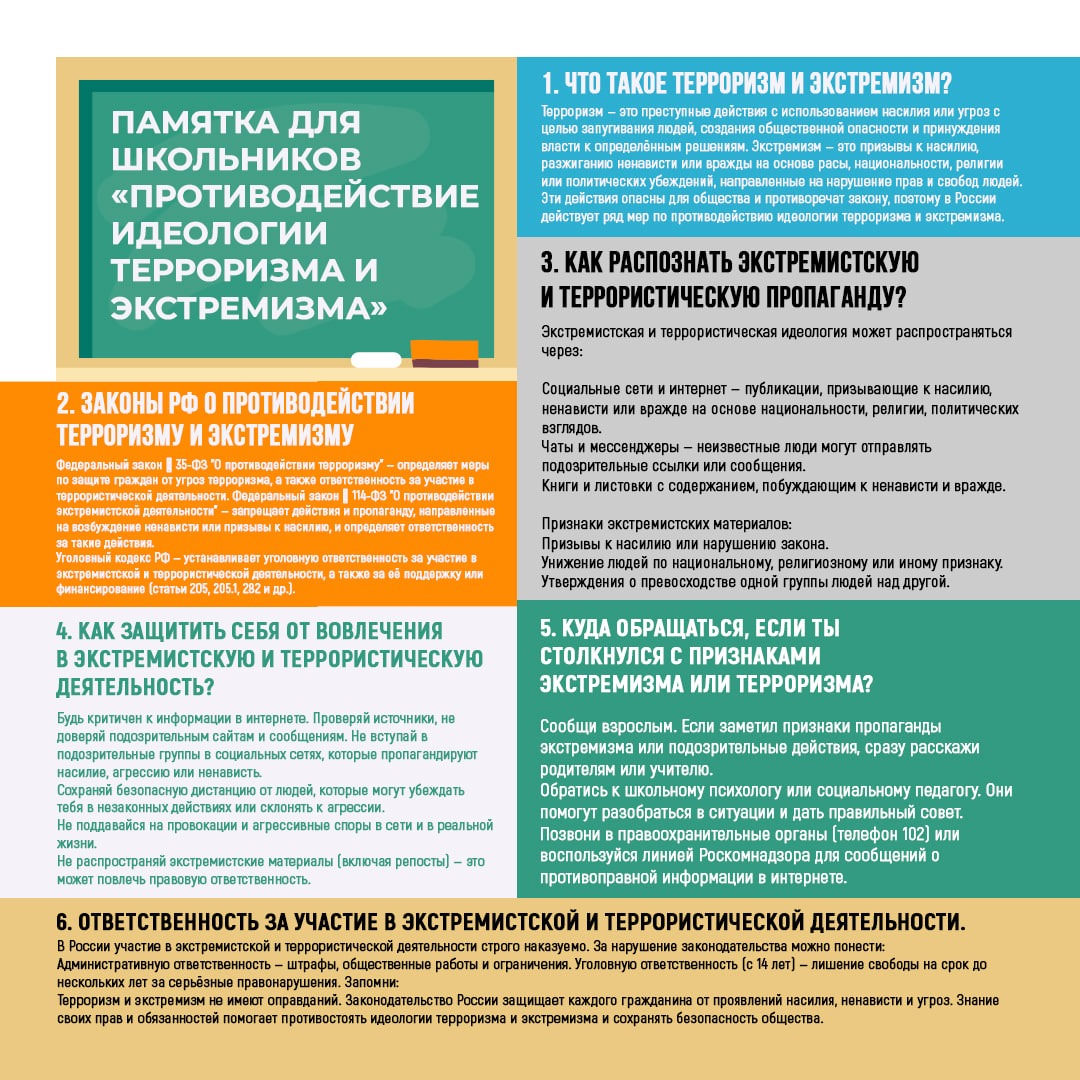 Памятка для школьников "Противодействие идеологии терроризма и экстремизма"